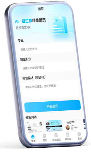 AI 简历是基于人工智能的求职工具,输入背景、职位及描述,短时间生成专业精美、符合行业标准的个性化简历,多款模板助您脱颖而出。